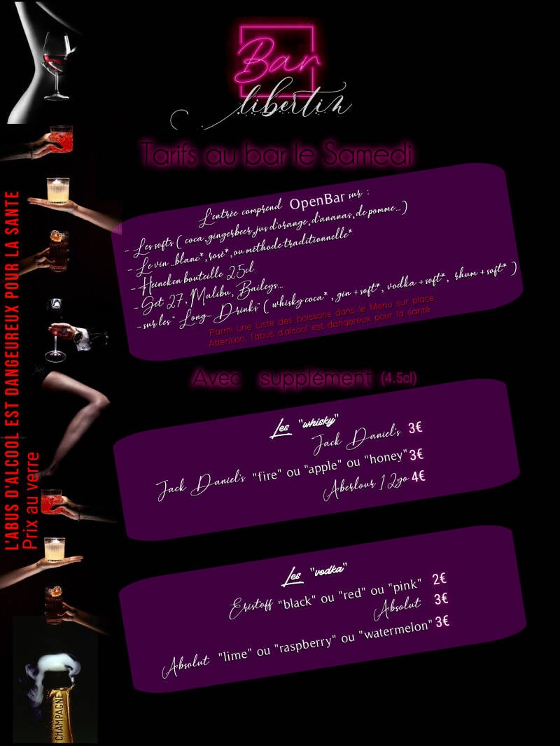 Le samedi soir, c'est une ambiance plus décontractée, encore plus conviviale et branchée. Les plus gourmandes demanderont à l'entrée un bracelet bleu, afin que les quelques gentlemen acceptés sachent vers qui aller pour faire connaissance, sans déranger les couples qui ne cherchent que l'échangisme, et qui porteront un bracelet vert, ou les bi, qui porteront un bracelet rose.